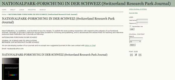 این ژورنال که وابسته به پارک ملی سویس است توسط کلاهبرداران مورد سرقت قرار گرفته است.کلاهبرداران از طریق وب سایتی با همین نام اقدام به چاپ مقالاتی در زمینه های مختلف علمی می کنند و در ازای چاپ هر مقاله مبلغی حدود 200 دلار از نویسندگان دریافت می نمایند.