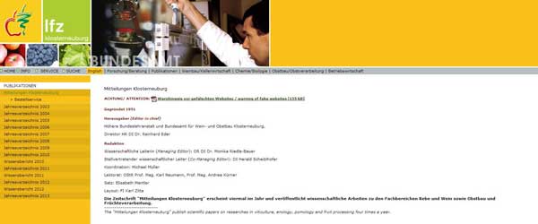 ژورنال Mitteilungen Klosterneuburg ژورنال انولوژی اتریش می باشد که به صورت آنلاین فعالیتی ندارد. این ژورنال توسط کلاهبرداران اینترنتی هایجک شد بدین ترتیب که آنها یک وب سایت با نام این ژورنال ساختند و مشخصات آن را جعل کردند تا از این طریق بتوانند نظر نویسندگان و محققان رابه خود جلب کنند و مقالاتشان را برای آنها ثبت کنند. برخلاف بیشتر ژورنالهای هایجک شده دیگر، نسخه واقعی این ژورنال نیز open access می باشد و به همین خاطر محققین زیادی بدون شک و تردید نسبت به ماهیت این ژورنال مقالات خود را جهت چاپ برای این ژورنال ثبت کردند.