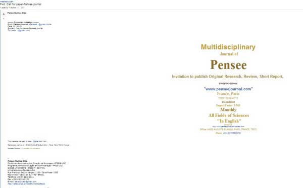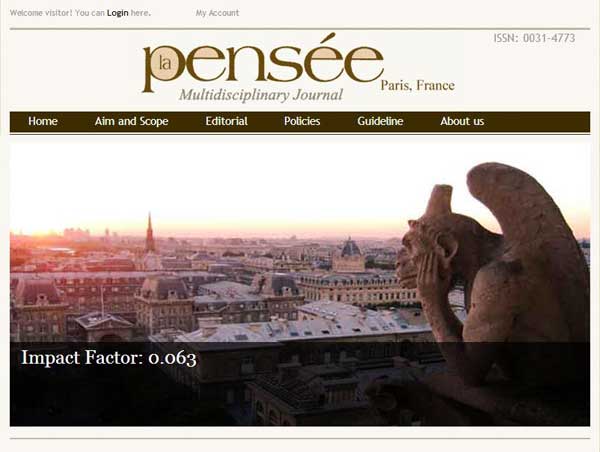 ژورنال Pensee از سال 1939 توسط انتشارات Espaces Marx در فرانسه به چاپ می رسد. این ژورنال مقالاتی را در حوزه علوم اجتماعی و با تمرکز بر روی روابط بین الملل منتشر می نماید. این ژورنال معتبر که تنها به صورت چاپی فعالیت می کند متاسفانه توسط کلاهبرداران اینترنتی مورد سرقت قرار گرفت. آنها وب سایتی را با عنوان این ژورنال به ثبت رساندند و مقالاتی را در تمام حوزه های دانش بشری از شیمی تا فلسفه و مهندسی به چاپ می رسانند و در ازای هر مقاله مبالغ بالایی را دریافت می نمایند . کلاهبرداران ایمیلی را به طور گسترده برای تعداد زیادی از محققین فرستاده اند و از آنها جهت چاپ مقالاتشان در این ژورنال دعوت به عمل آورده اند