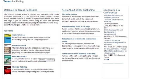 انتشارات توماس انتشاراتی است که 4 ژورنال جعلی را منتشر می کند که شامل: Systems Science, Education Journal, Politica Economica, Chemical Modelling. می باشد و همه این ژورنالها به دروغ ادعا کرده اند Impact Factor دارند.